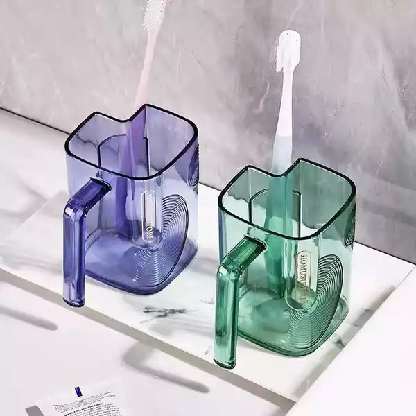 Cốc đánh răng với thiết kế tinh tế với kết cấu trong suốt, hình dáng đẹp và bắt mắt, cùng với thiết kế phân vùng tiện lợi để có thể để bàn chải đánh răng